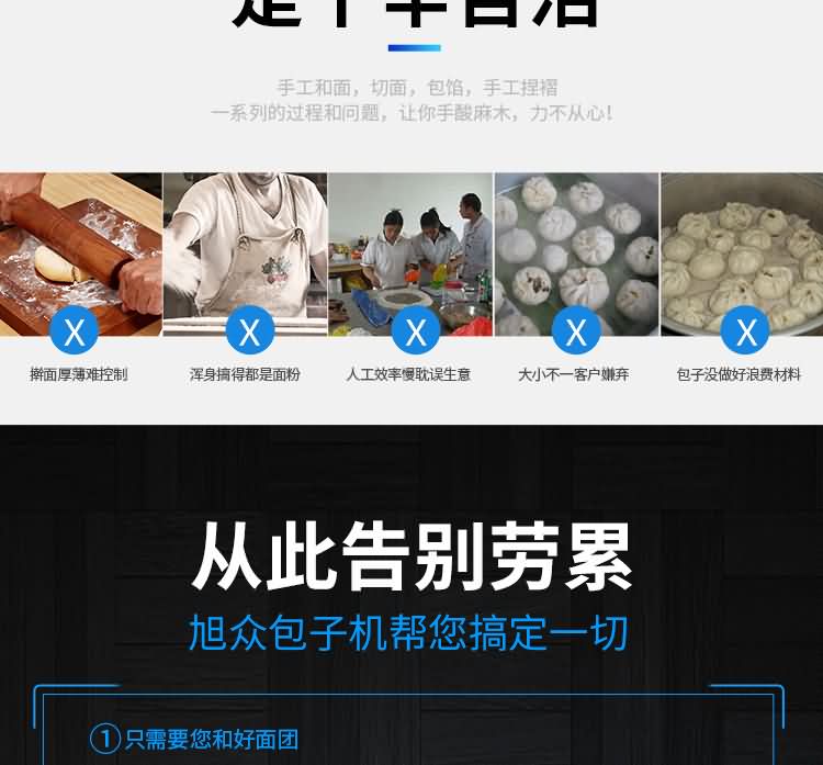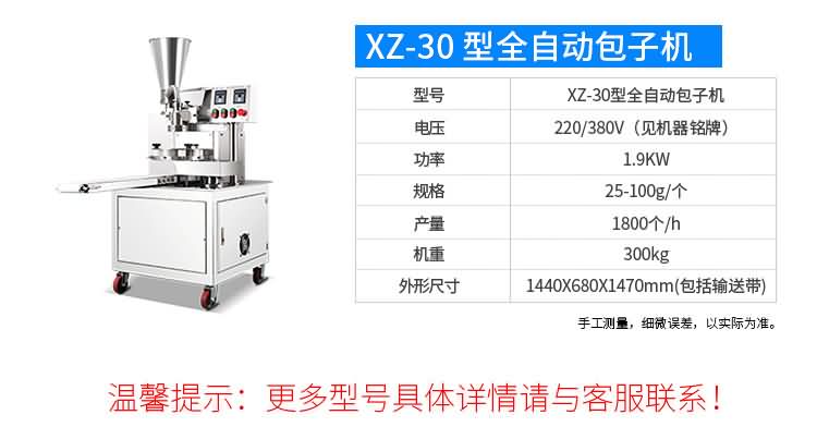 XZ-87型全自動包子機(jī),可生產(chǎn)各種肉包、菜包、肉菜包、小籠包、湯包、水晶包、圓饅頭、奶黃包、豆沙包、叉燒包、南瓜餅、煎堆等十幾種包餡制品。適用于賓館、飯店、學(xué)校、機(jī)關(guān)企業(yè)食堂、饅頭或包子加工廠、早餐工程店及速凍食品廠等單位??蓾M足不同客戶群體。免費(fèi)提供工藝技術(shù)。免費(fèi)上門培訓(xùn)指導(dǎo)安裝。