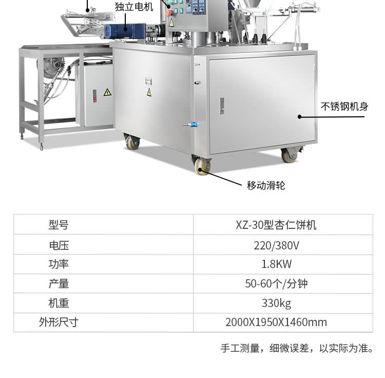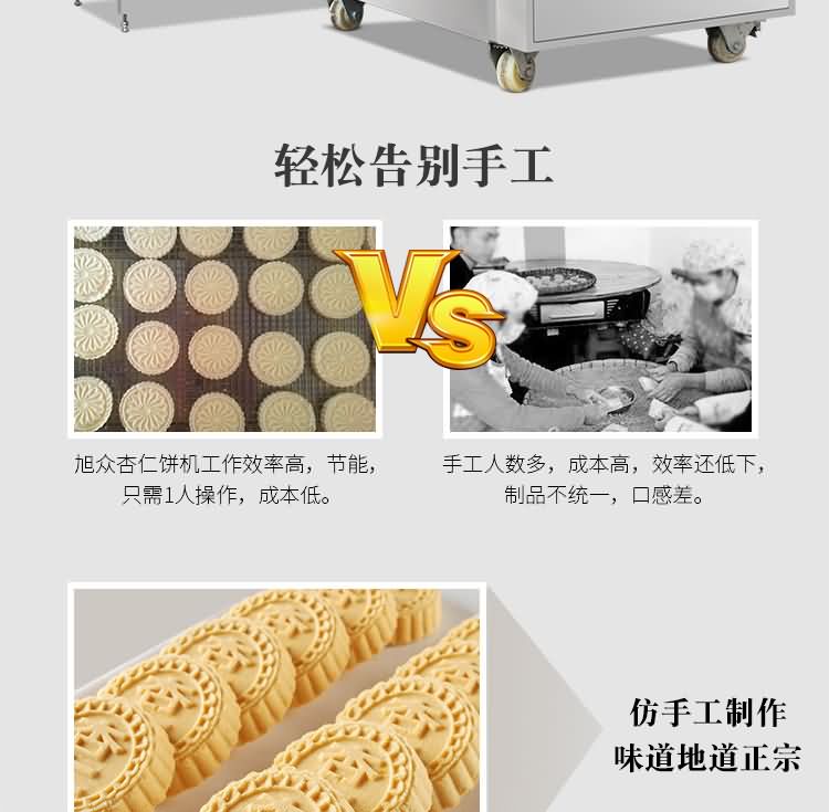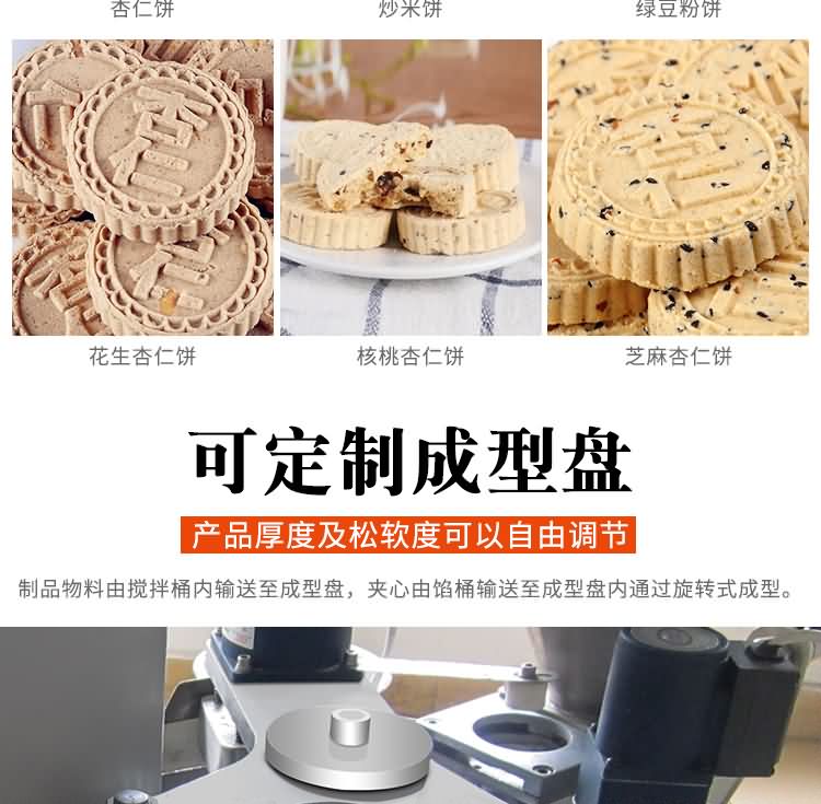 ◆杏仁餅機(jī)用于制作杏仁餅、炒米餅成型、炒米餅成形、夾心粉餅,綠豆餅。