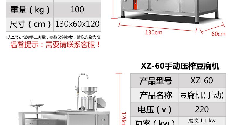 型號 | XZ-60豆腐機 | XZ-61豆腐機 | XZ-100豆腐機 |