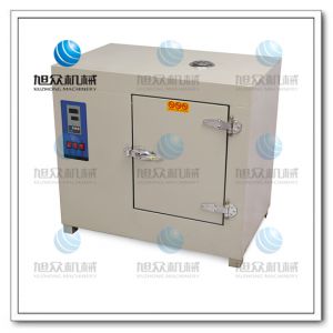 本品工作室下部裝有發(fā)熱絲,左側(cè)裝有鼓風(fēng)裝置,溫度控制儀控制溫度恒定及高低,工作時(shí)空氣由箱底進(jìn)氣孔流進(jìn),經(jīng)發(fā)熱絲加熱再經(jīng)鼓風(fēng)裝置流入工作室,再由箱頂排氣孔排出。本品工作室與外殼之間有玻璃纖維做保溫材料,外殼用鋼板制成。