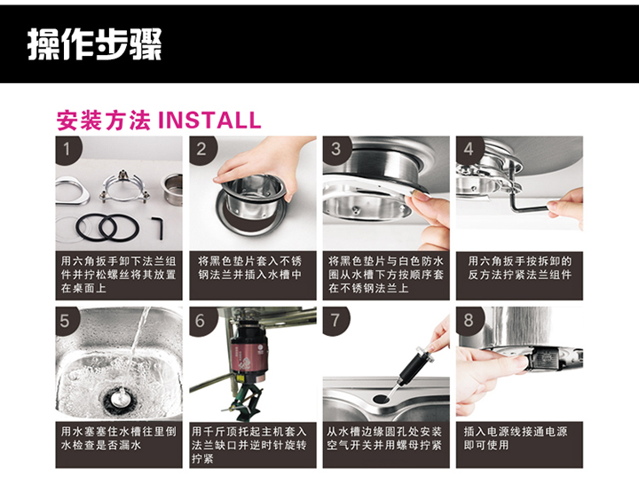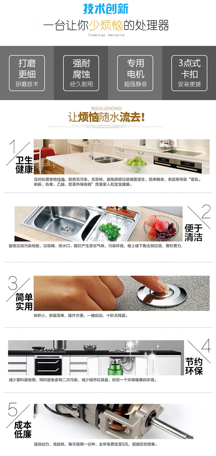 DCLQ38-廚房垃圾處理器,該機(jī)擁有獨(dú)特的粉碎功能,使所有垃圾研磨吸毒真正低于3毫米,用戶不用為管道堵塞而煩惱,粉碎后粗、細(xì)兩種垃圾通過(guò)濾孔自動(dòng)分離,成漿狀的細(xì)垃圾隨水流流入管道,粗的垃圾會(huì)稍停留在研磨倉(cāng)繼續(xù)粉碎,形成粉末狀后,再隨水流流入管道,客戶可以放心使用。