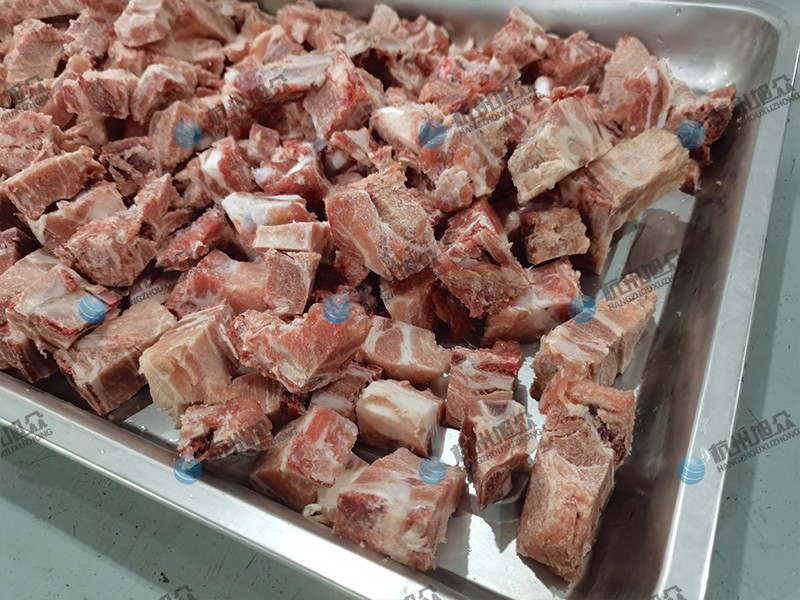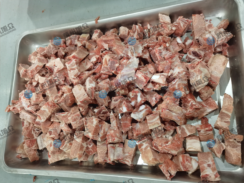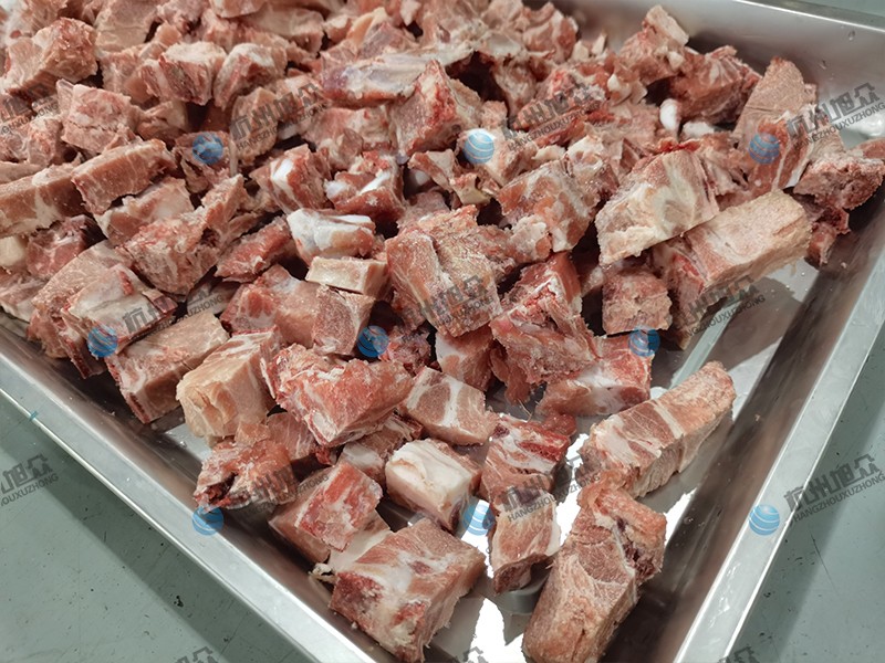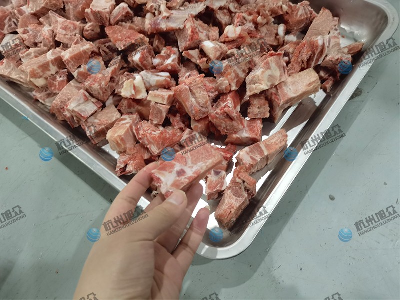 客戶上門試機130A剁塊機剁3cm的排骨,效果滿意!