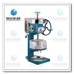 轉(zhuǎn)動搖把,將主軸升到最高點,放冰塊于刀盤上;轉(zhuǎn)反向動搖搖把,放下主軸,使壓針插入冰塊;啟動開頭進(jìn)行工作,工作一個程序后,按以上步驟重新操作后進(jìn)行第二次工作。