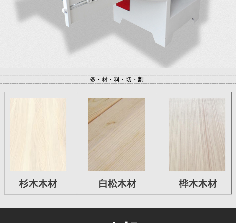 3、鋸切過(guò)程穩(wěn)定,鋸切精度高,表面光滑平整,無(wú)需再次壓刨加工,減少木材浪費(fèi)。