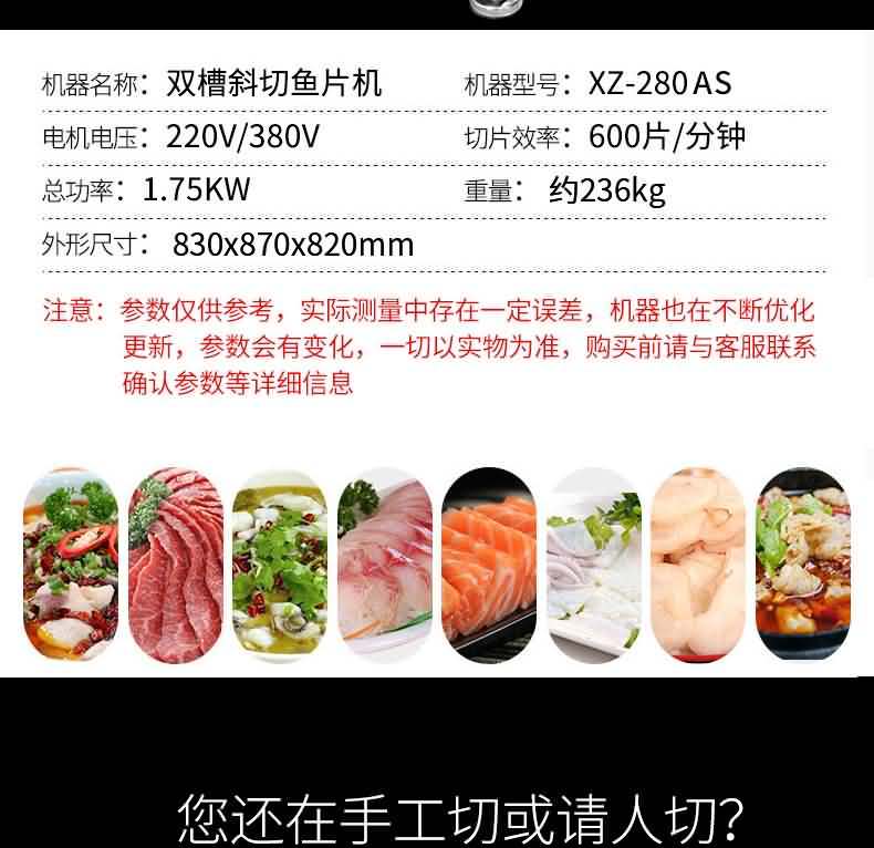 XZ-280AS雙槽切魚片機(304不銹鋼),