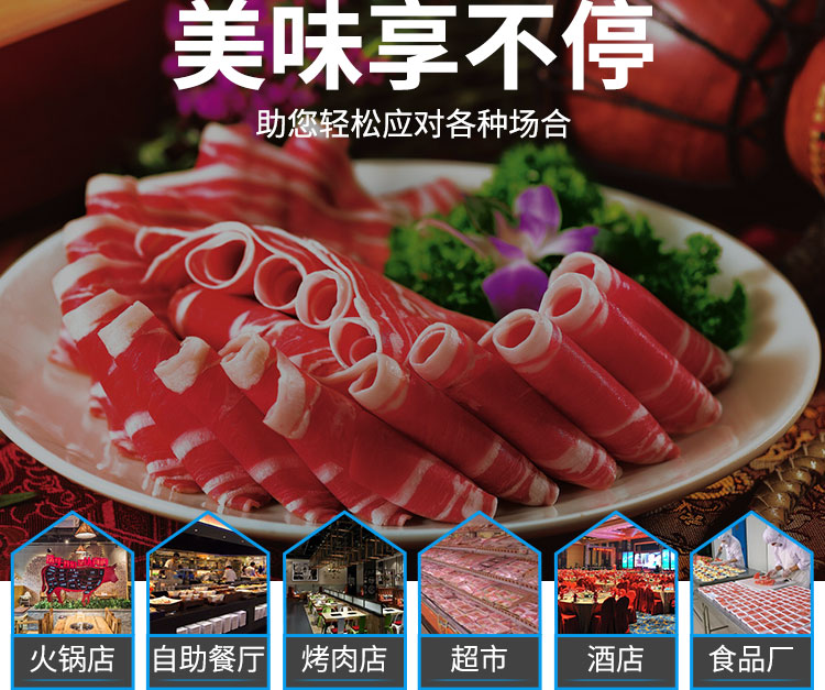 1.不用解凍,-18度的肉卷上機即可切片,肉片不碎且成型美觀