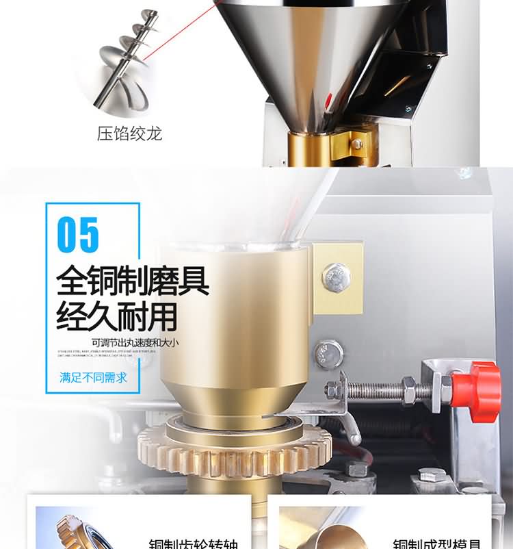 肉丸成型機(jī)采用不銹鋼材質(zhì),丸子直徑可達(dá)15-35mm,可以制作各類爽脆,有韌性、有彈性的豬肉丸、魚丸、牛肉丸、貢丸、雞肉丸等,不僅花色品種繁多,口味可自由變換以外,還在原有的基礎(chǔ)上大大降低了生產(chǎn)成本。