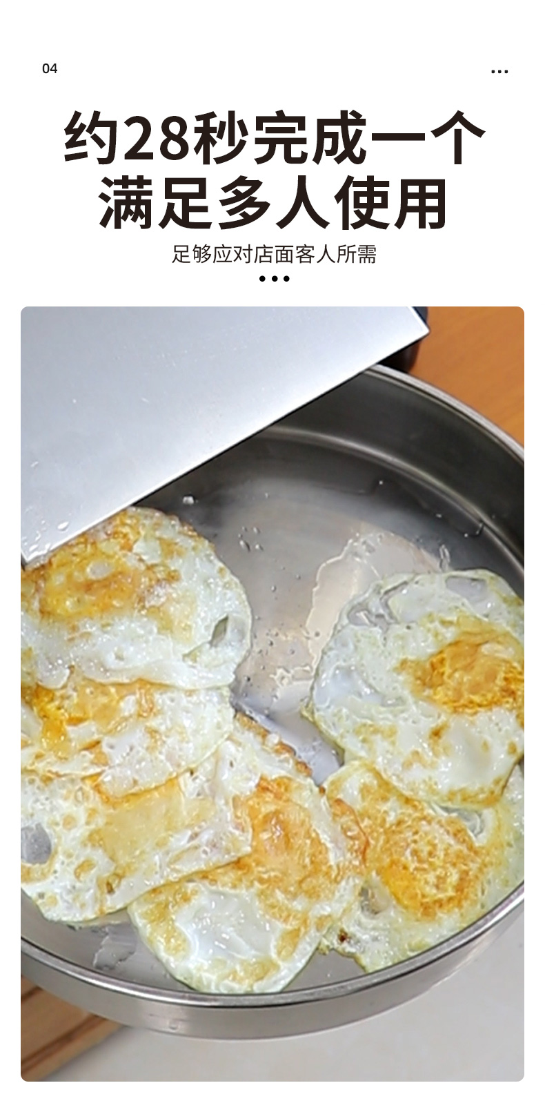 商用全自動(dòng)智能煎蛋機(jī),匠心造細(xì)節(jié)煎蛋機(jī)的核心技術(shù),輕油少煙、5~10分熟、鐵氟龍煎鍋、觸屏控制、智能控溫??谖秱€(gè)性化五分/七分/十分熟,智能控溫上下鍋恒溫煎烤。