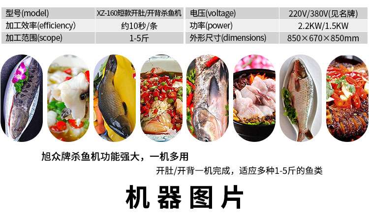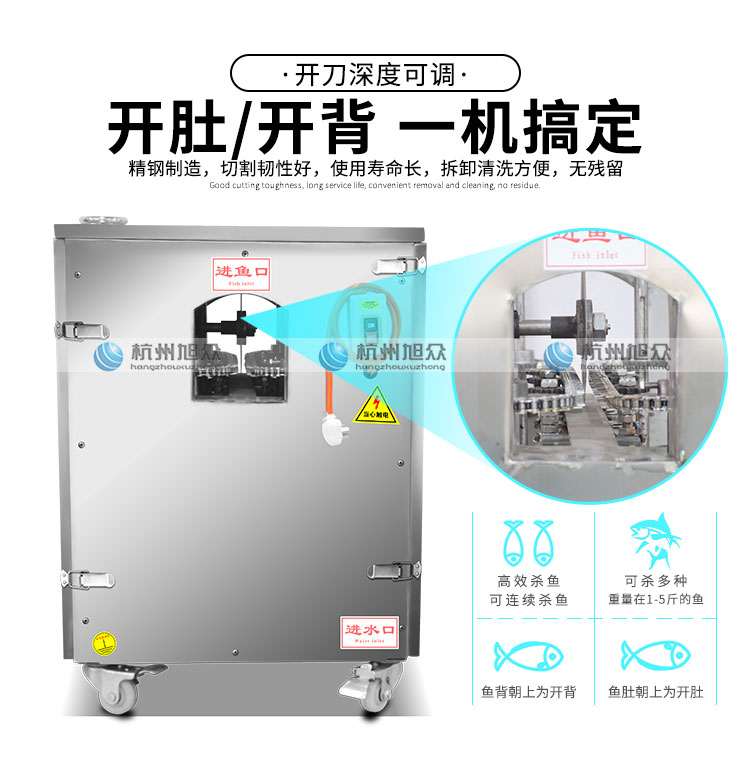 本機整機采用優(yōu)質不銹鋼制造,耐磨耐用,符合食品衛(wèi)生標準。把魚放在設備的入料口,輸送鏈條自動把魚送到切割刀片處將開肚/開背(魚肚朝上放為開肚,魚背朝上放為開背),適用于水產品加工廠,肉類加工廠,魚類罐頭廠,大型餐飲行業(yè)等單位。本產品不會對魚頭、魚尾、魚鰭造成損傷。