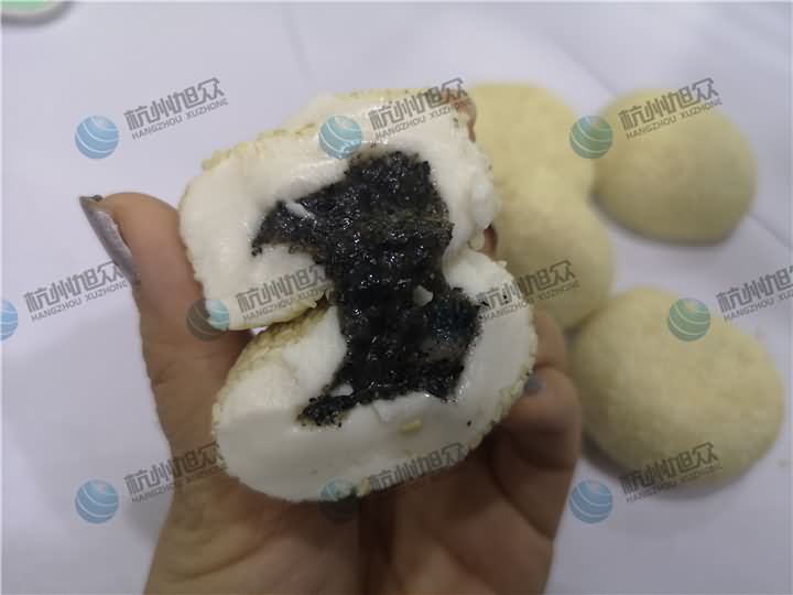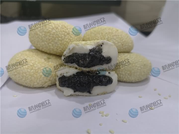 那么旭眾的麻球機(jī)究竟是怎樣的呢?那就是我們的多功能包餡機(jī)!昨日客戶將在自己食品廠和好的面團(tuán)、袋裝的黑芝麻餡料及裹在外層的白芝麻帶來了現(xiàn)場(chǎng),因?yàn)樗麄兡壳斑€是人工包芝麻成型,在人工投入方面非常的大,但是還是缺人,可以想象他們每日的生產(chǎn)量是有多大,于是他們帶著直接做好物料來到了現(xiàn)場(chǎng),只要能看到包餡機(jī)做出他們想要的效果便可,那么來看看XZ-99多功能包餡機(jī)做出來的麻球是怎樣的: