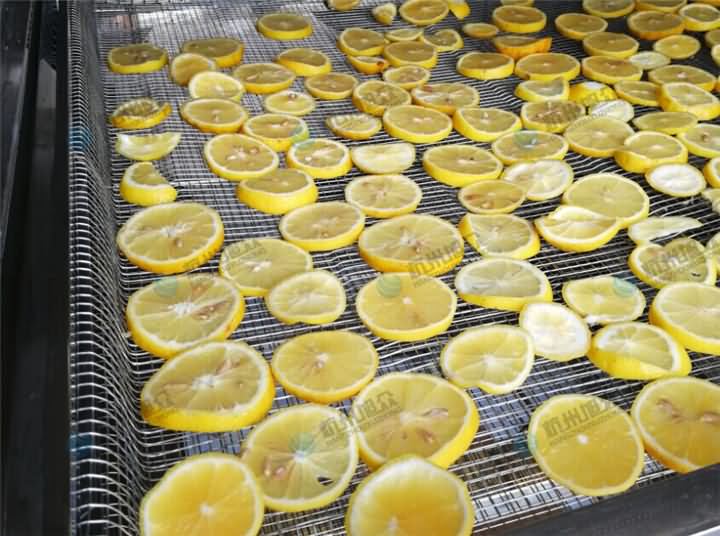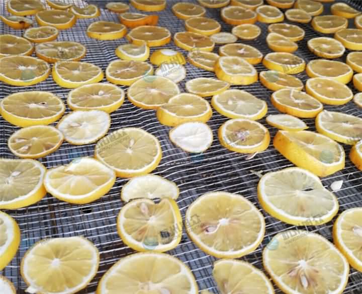 檸檬片分為烘干檸檬片和凍干檸檬片。烘干檸檬片一般是比較??;凍干檸檬片一般是比較厚。而凍干檸檬又分為普通的凍干檸檬和蜂蜜凍干檸檬。而我們的客戶做的是烘干檸檬片,僅需烘干機(jī),不用擔(dān)心下雨天還是陰天都能通通烘干,那么我們來(lái)看看烘干機(jī)烘干檸檬片的效果:
