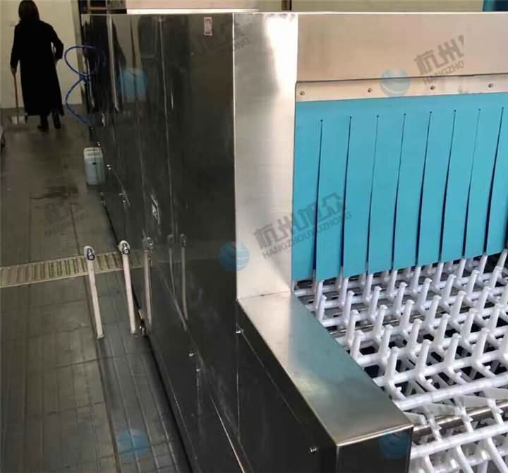 旭眾專業(yè)定制、生產、銷售集一體的食品加工設備廠,長龍式洗碗機可根據客戶及場地需求定制不同長度的洗碗機,這次的客戶是嘉興某公司食堂專用,以前的洗碗加工中心配送的,后面覺得還得自己人洗洗得了,這樣還能檢查出來哪沒干凈還能立馬處理,但是發(fā)現人工洗碗也是非常費時、費人力,于是咨詢到旭眾洗碗機廠家也就是我們,根據客戶需求洗碗、烘干、消毒一體的洗碗機,然后擺放的空間大小,便定制了長達4.8米的長龍式洗碗機,現在我們的調試人員剛好上門調試好洗碗機:
