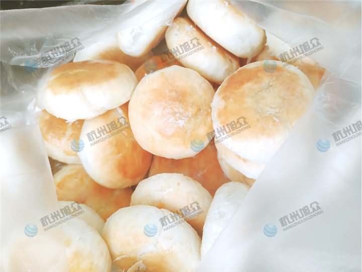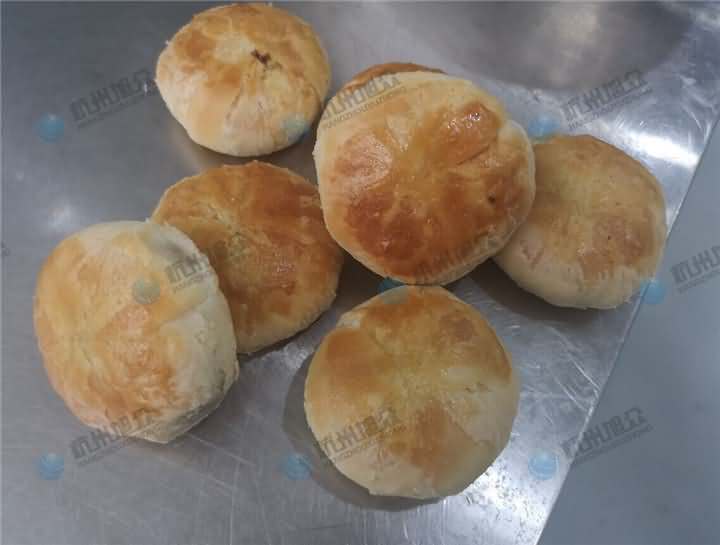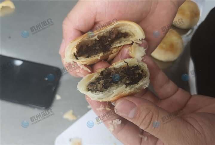 做酥餅啦,每天念叨著要吃梅干菜包子,今天客戶帶著梅干菜肉餡來到公司,以為是要做包子,結(jié)果是想考察酥餅機設(shè)備,于是便給他安排上了酥餅機試機,因為現(xiàn)在餡料有的,只需要做油面皮,前面步驟就不說了,跟以前一樣和面過程加入油,油面團和好后再加入油酥進去人工搟好面皮便可,將搟面的面皮放在酥餅機的上輸送架,餡料放入供餡機中,先調(diào)整面皮的克重之后再充餡,成型出來的酥餅放入預(yù)熱過的烘爐中烘烤幾十分鐘便可以了。
