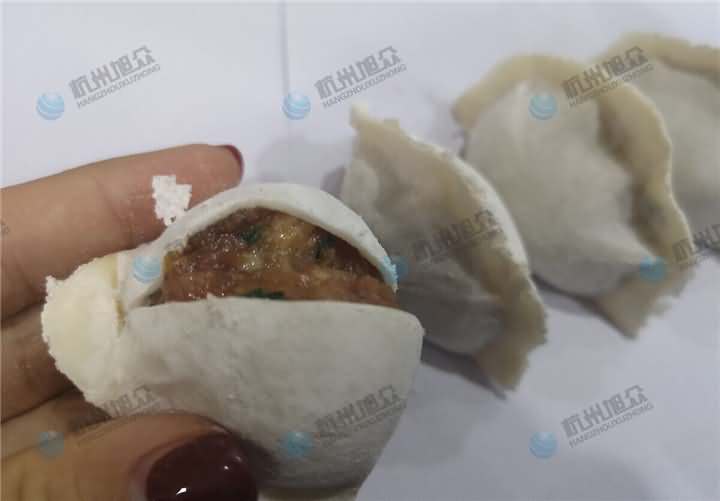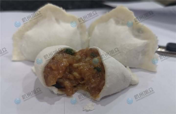 大概咨詢了水餃機(jī)的價(jià)位及做的水餃大小,于是便帶著餡料來(lái)到現(xiàn)場(chǎng),直觀JGB-210仿手工餃子機(jī)做水餃效果,餡料真真的飽滿十足,口感的話也還可以,因?yàn)轱溩訖C(jī)只是代替人工包水餃,口感還是要看自己的工藝,客戶也看到自己想要的效果,于是便訂購(gòu)餃子機(jī)回家等待師傅上門調(diào)試!