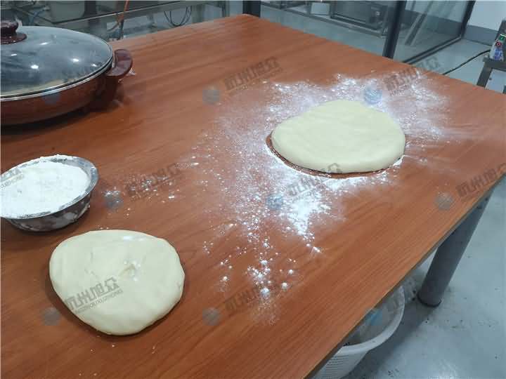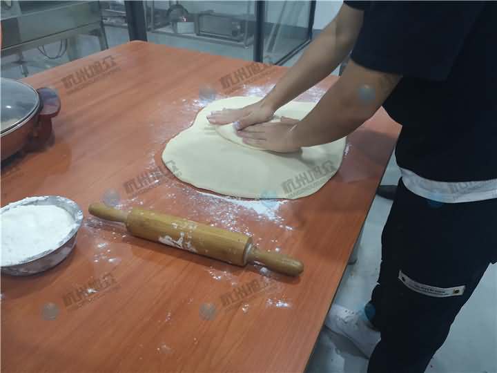 步驟三:將面皮平鋪放置酥餅機(jī)的上輸送架
