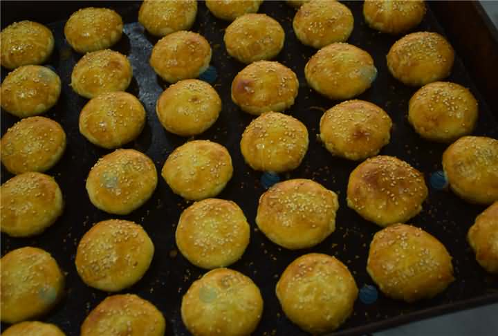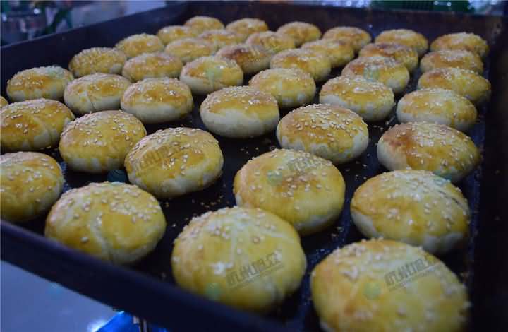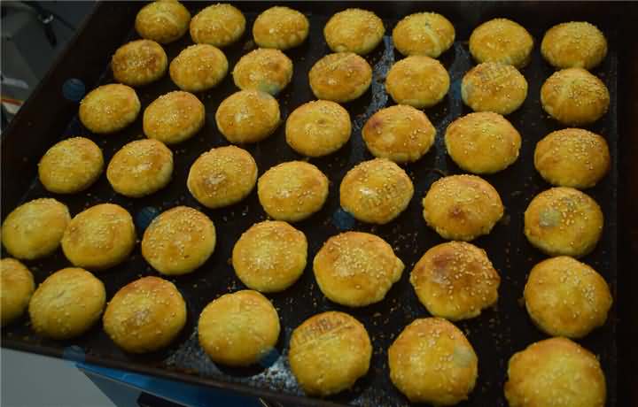 平常做的酥餅可沒有這么的黃燦燦,這次是加了蛋黃液和芝麻,看起來更美味,想嘗一嘗酥餅機(jī)做出來的酥餅口感嗎?歡迎來電400-885-2117咨詢酥餅機(jī)設(shè)備!