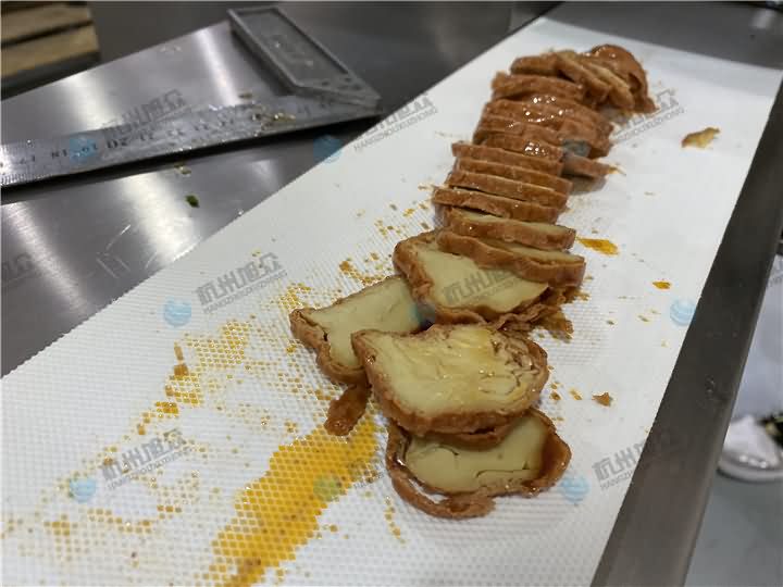 素雞切片選擇哪款設(shè)備呢?自然選擇熟肉切片機(jī),該機(jī)切片厚薄可1-20mm可隨意調(diào)整,切片厚薄均勻,不信,可寄物料到旭眾機(jī)械廠,這不老板立馬寄了兩包素雞過(guò)來(lái),現(xiàn)場(chǎng)用熟肉切片機(jī)切素雞片,拍了視頻及成品再給客戶寄回去,5mm、3mm切片毫無(wú)壓力,那么我們來(lái)看熟肉切片機(jī)切素雞片效果: