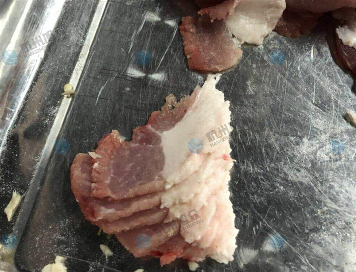 該怎么說呢,也不是說切五花肉不好切,而是如果要切肉片的話,還是比較建議客戶選擇專門的切肉機(jī),斜切五花肉這種帶筋膜切出來的肉片都不是特別的厚薄均勻,當(dāng)然具體還是看客戶怎么想,因為有些客戶就是需要這種斜切式方法來切五花肉,客戶試機(jī)完后覺得滿意就直接定購了,客戶都滿意那我們也只能提供切魚片機(jī)啦!