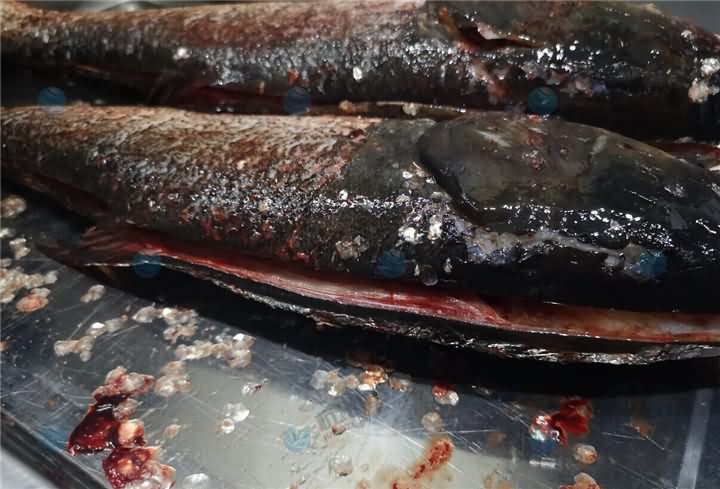 從圖中可以看出來,其中一條花鰱的頭部魚皮有些損耗,像做剁椒魚頭的餐館肯定是接受不了的。魚頭為什么會(huì)有損傷呢?全自動(dòng)殺魚機(jī)自帶去魚鱗功能,在你放魚的過程中放的速度過慢,去魚鱗會(huì)將魚頭刮傷,放快一點(diǎn)那么花鰱身上的魚鱗就不會(huì)去的那么干凈。所以當(dāng)你既想保留它完整的魚頭,又要將魚身的魚鱗刮干凈,我們是建議客戶購買兩臺(tái)設(shè)備搭配使用的。更多關(guān)于殺魚機(jī)詳情來電4008852117咨詢客服。