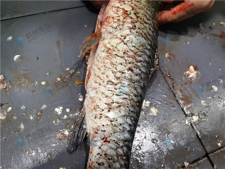 其實(shí)看圖一的時候可以看得出來,接近魚頭部分的魚鱗沒有去除干凈,這就是人員在放魚的過程速度過快,所以魚鱗去除的不是很干凈,不過基本上也打松了,人員清理的時候稍微用刀帶一下便可脫落。更多殺魚機(jī)詳情撥打4008852117咨詢客服熱線。