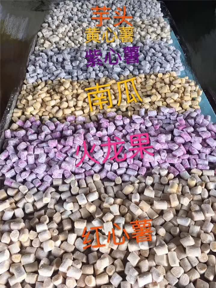 剛定購(gòu)商用大型XZ-15芋圓機(jī)客戶(hù)跟著師傅學(xué)習(xí)操作后不久,開(kāi)始自己操作用芋圓機(jī)做起了芋圓,從原來(lái)的單一的紅薯芋圓發(fā)展至現(xiàn)場(chǎng)多種不同口味的芋圓,如:芋頭、黃心薯、紫心薯、南瓜、火龍果。能用來(lái)做芋圓的雜糧都拿來(lái)用芋圓機(jī)高效生產(chǎn),生產(chǎn)出來(lái)的成品外觀一致,大小相差不過(guò)1-2克客戶(hù)自己能接受,擺放好的雜糧芋圓就像一道彩虹照亮了客戶(hù)的致富之路!