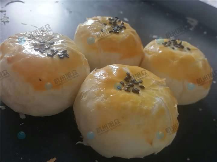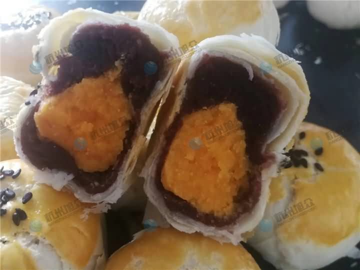 前段時間現(xiàn)場考察做蛋黃酥機器的客戶,現(xiàn)在已經(jīng)正式運用酥餅機來批量生產(chǎn)蛋黃酥,這蛋黃酥比來工廠試機做出來的成品更有誘惑力,光是看圖片都能感覺到很好吃的樣子,那么我們來看看酥餅機做的蛋黃酥效果: