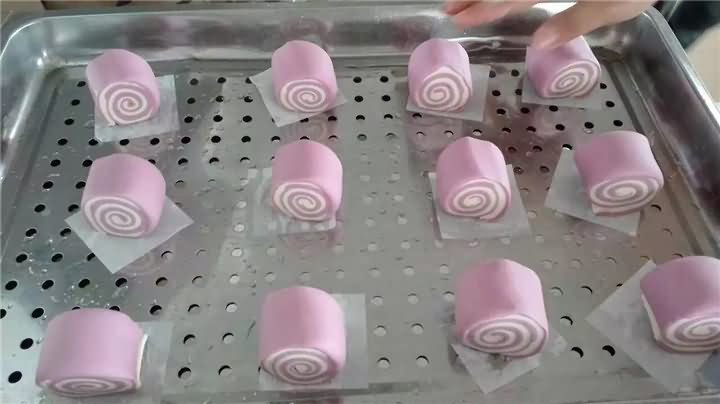 那么刀切饅頭機是怎么做出雙色的呢?原來將兩種不同的面粉分別和面、壓面后,上下鋪放在一起,再通過刀切饅頭機自動壓面皮、卷面皮、切割成一個個方饅頭。操作非常的簡單易學,歡迎來電400-885-2117咨詢刀切饅頭機。