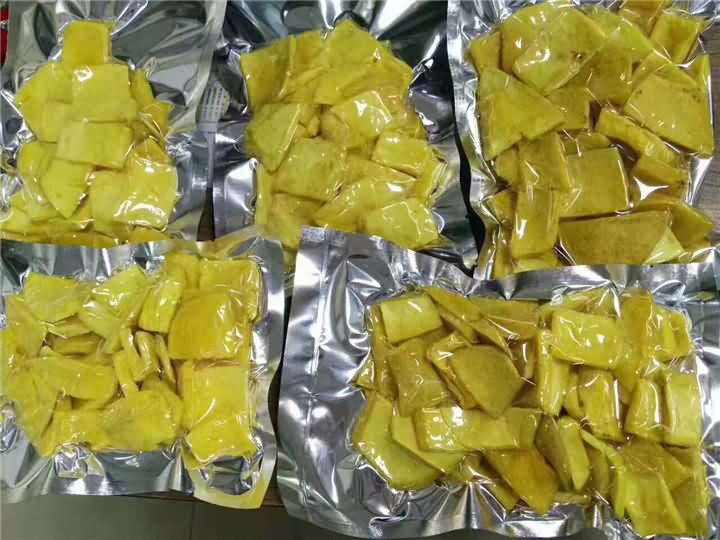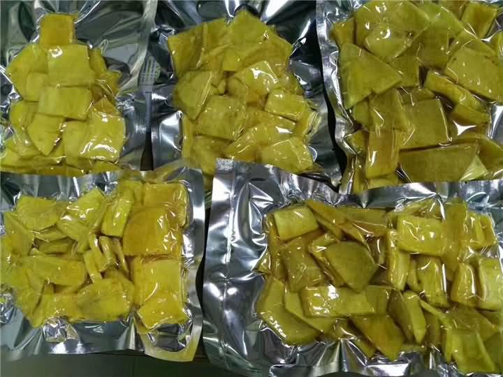 低溫真空油炸機(jī)油炸:保存了果蔬原有的形、色、香、味,并富含維生素、礦物質(zhì)、纖維等多種營(yíng)養(yǎng)成分,具有低糖、低鹽、低脂、低熱等特征,炸出健康時(shí)尚食品!剛炸好的芒果干效果: