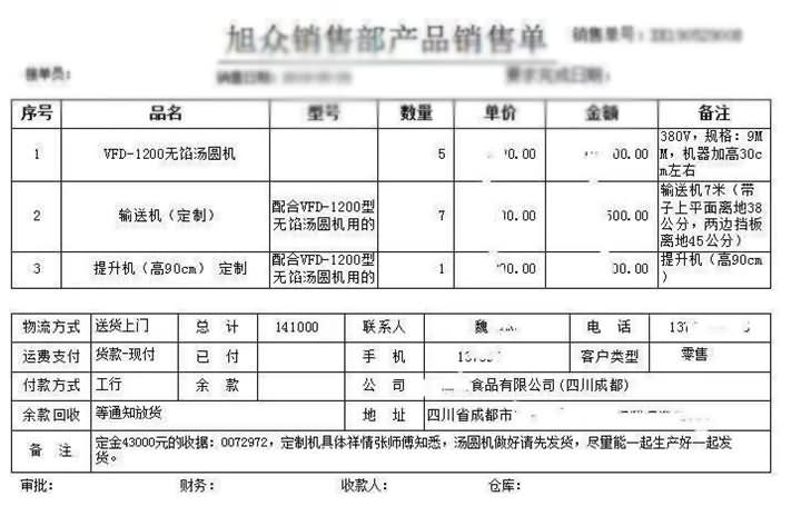 感謝成都的魏總再次復(fù)購五臺無餡湯圓機,用于做珍珠丸子。魏總前后共訂了13臺無餡湯圓機,后續(xù)需要量也會更大