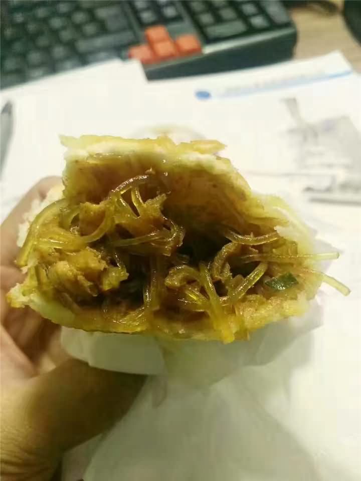 客戶在家自己拌好的羅博粉絲豬肉餡帶來到旭眾機(jī)械廠,因?yàn)樗麃碇熬鸵呀?jīng)致電400-885-2117咨詢客服了解包子機(jī)基本情況后,再帶五斤左右的餡料想要現(xiàn)場直觀87包子機(jī)做蘿卜粉絲豬肉包子,當(dāng)然效果也是讓客戶非常滿意,直接現(xiàn)場成交定購87包子機(jī)一臺: