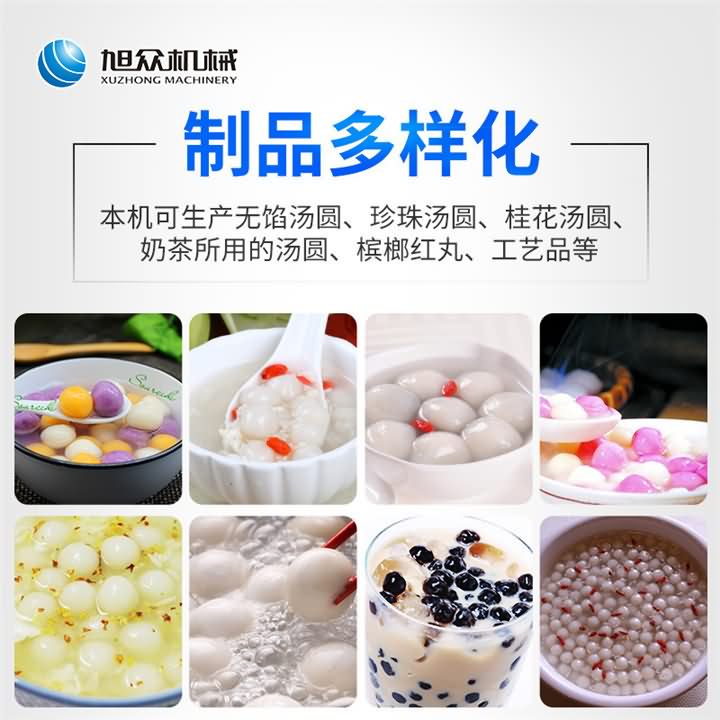 夏天到了,珍珠奶茶作為奶茶店的招牌特色,深得大家喜愛!旭眾1200型無餡湯圓機(jī)可生產(chǎn):各種無餡湯圓,桂花湯圓,珍珠湯圓,粉圓,奶茶所用的珍珠等。