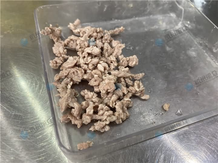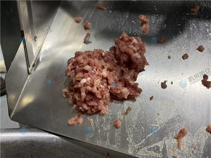 旭眾XZ-7單切機一次切肉片,二次切肉絲,三四次切肉粒,想要切肉粒的選單切機,想要絞肉切肉都要的選擇絞切機,那么我們來看看單切機切肉粒的效果: