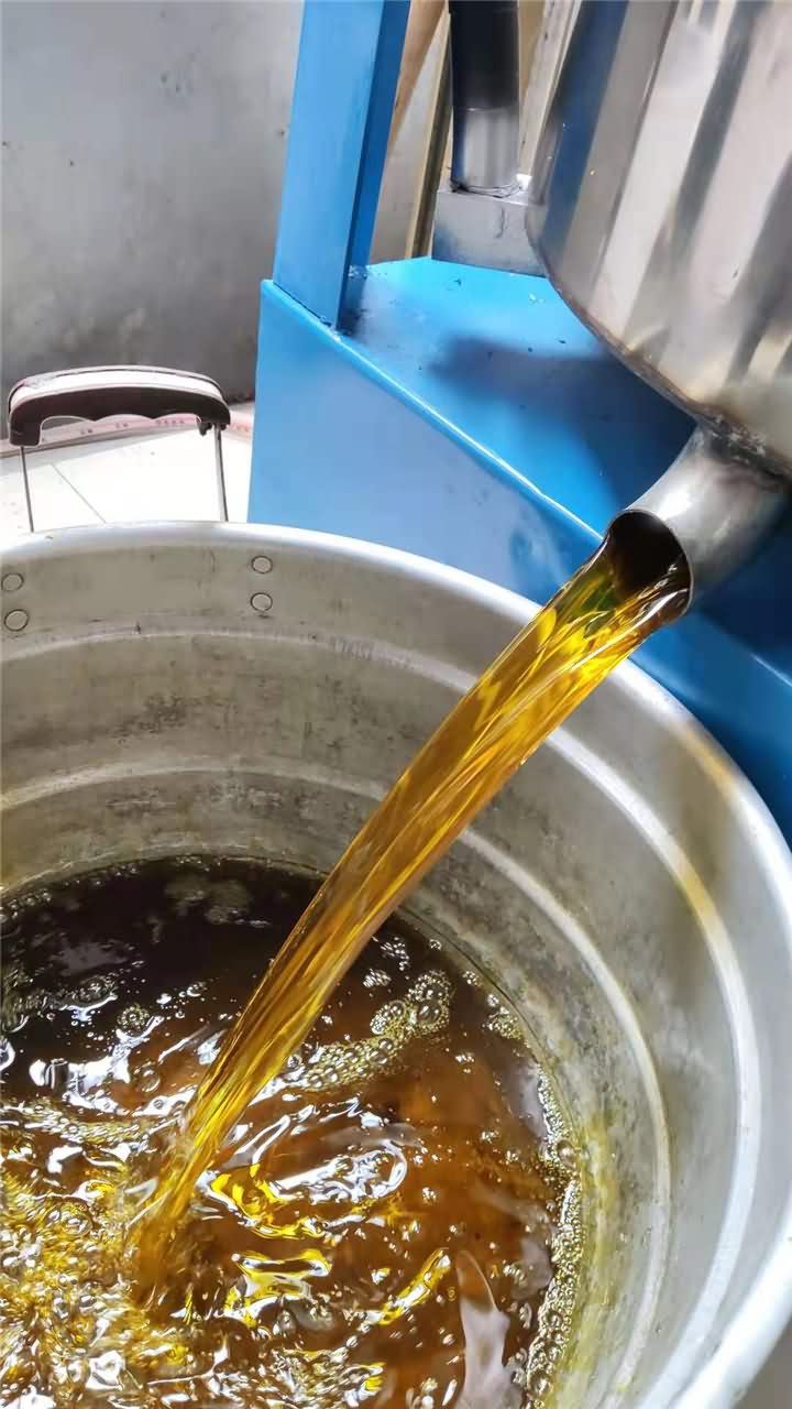 開榨油坊太簡單了,僅需這么幾臺榨油機設(shè)備就足夠了,炒料機、上料機、榨油機、濾油機組合在一起可以生產(chǎn)榨油機生產(chǎn)線,吳總現(xiàn)場操作榨油機熟榨菜籽油效果 :