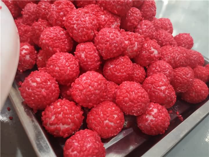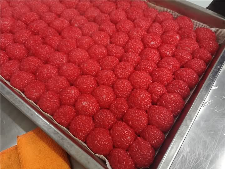 做紅米粿該如何選擇適合的湯圓機設(shè)備呢?自然優(yōu)選VFD-4000A湯圓機,只有該款湯圓機沒有自動擺盤功能,湯圓機做出搓圓成型的團子后,還需要裹上一層紅米,而自動擺盤的話人工到時候還得把成品拿出來后再裹米,裹好的團子估計外形就不太好看了,所以只要外表需要裹米或者裹粉的團子用VFD-4000A湯圓機就行了!