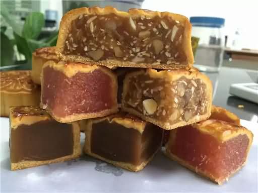 月餅包餡機(jī)與餡中餡月餅包餡機(jī)的區(qū)別在于包餡,一個只能包一種餡料,而另一個則是包的餡料中還包裹著一種餡料。做流心月餅或者蛋黃酥就會用得上餡中餡月餅包餡機(jī),那么我們來看看兩種月餅包餡機(jī)做出來月餅效果吧!