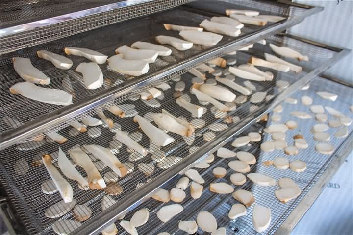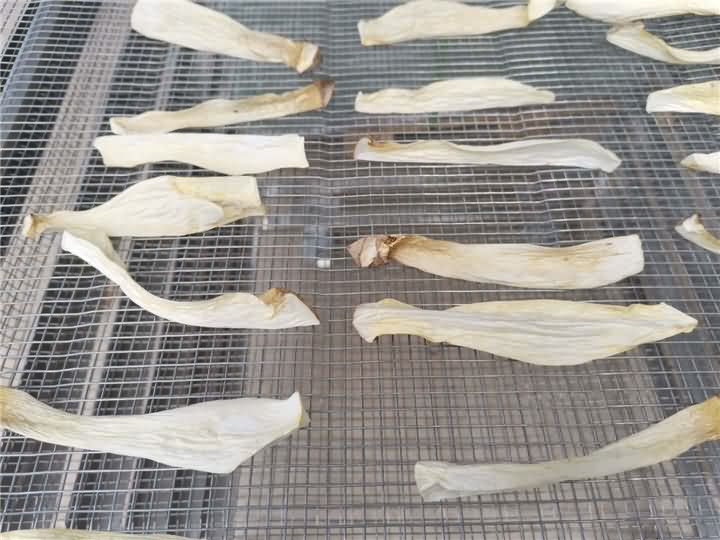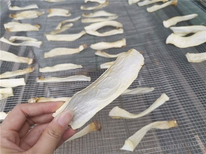 蘑菇類的一般含水量比較大,烘干過程過中要注意排濕,前期溫度不能過高,否則容易烘熟,使烘出來的成品顏色變黑。但也排濕過量不然色澤偏白,失去香味,一般排濕時間不超過6小時為宜。