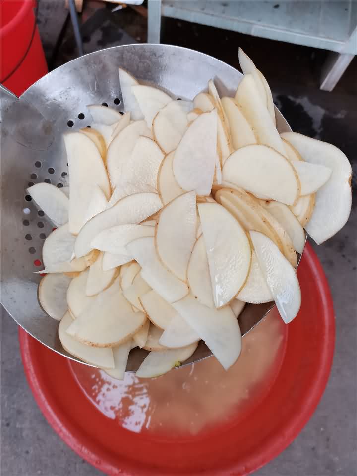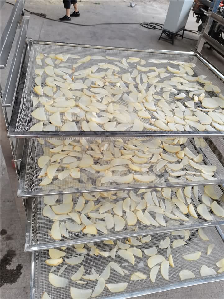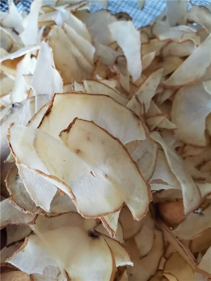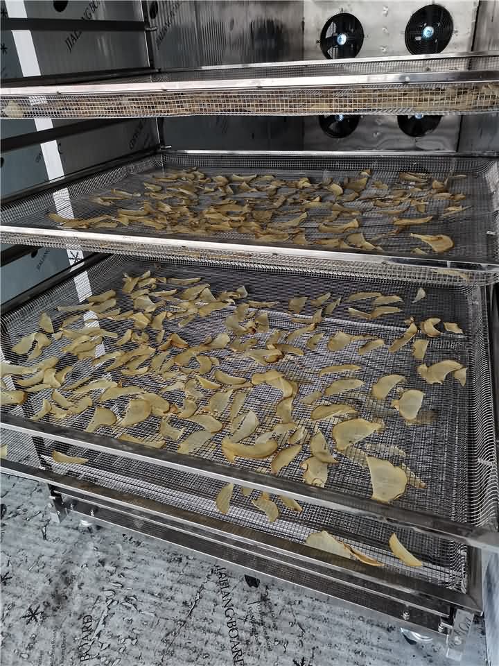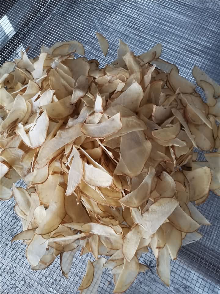 土豆烘干步驟:為了能加速烘干時間,可將土豆切成片狀,水煮后撈出平鋪放在架子上,不要各種重疊擺放,這樣放入烘干房內(nèi)可烘干均勻。那么我們來看看土豆片烘干前后的對比: