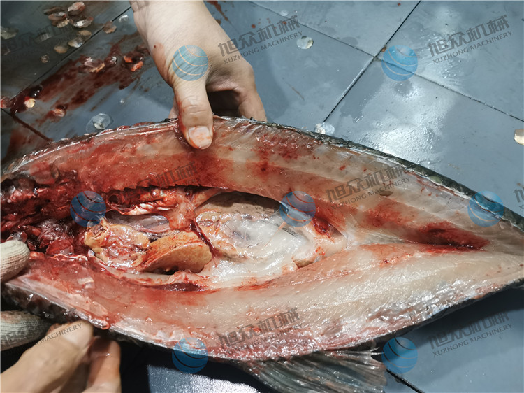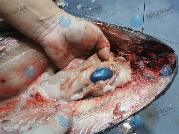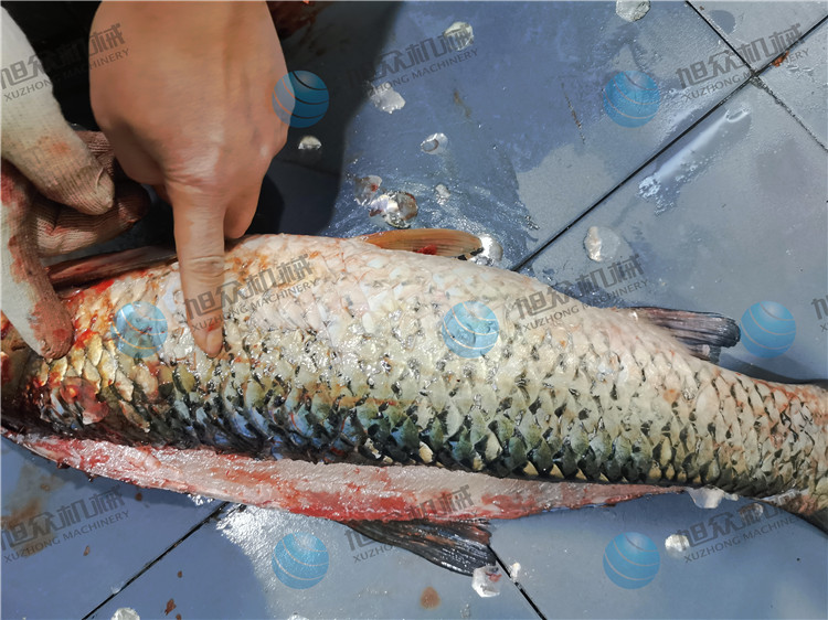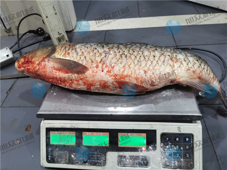 旭眾全自動(dòng)殺魚機(jī)開背殺6斤草魚效果展示如下: