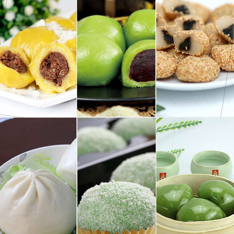2、取適量粉團搓成碗狀后,包入豆沙,再搓成圓球。