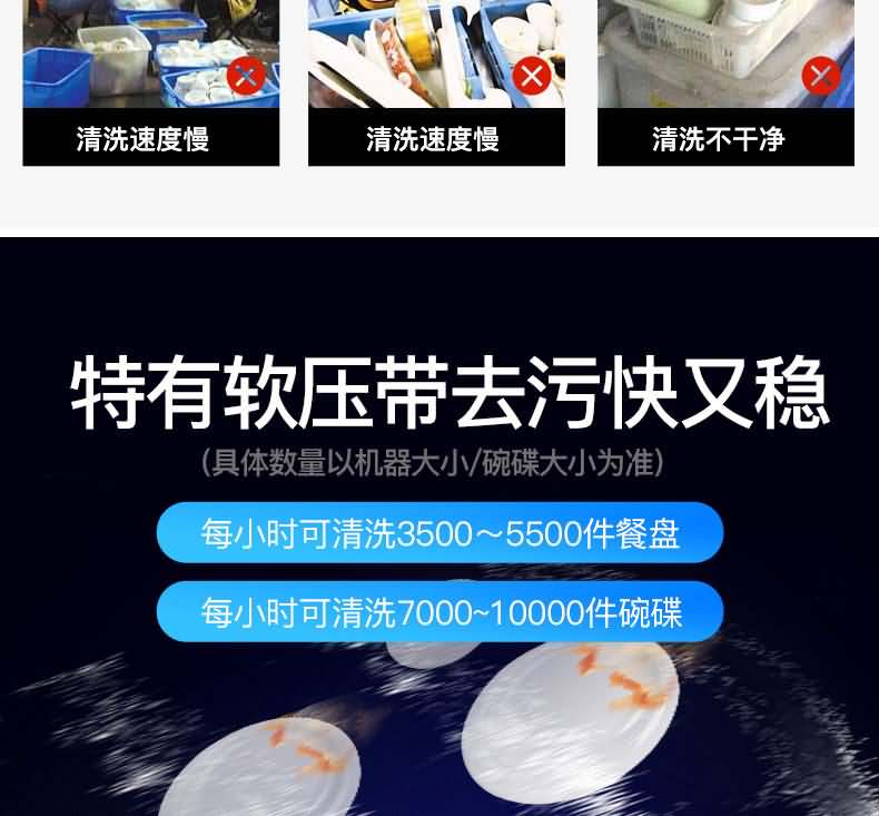 4. 餐具不需預(yù)洗,洗凈能力強(qiáng),速度快;