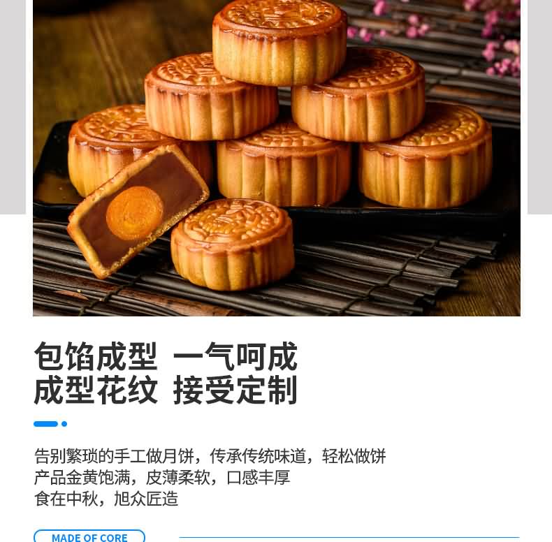 ◆可生產(chǎn)各種包餡食品如鳳梨酥、夾心餅、南瓜餅、軟皮老婆餅、月餅、軟餡餅干、棗泥餅、麻署、紅龜果、湯圓、芋圓、肉圓、肉派、肉餡餅、奶黃包、豆沙包、草餅、芝麻球、水晶丸等。