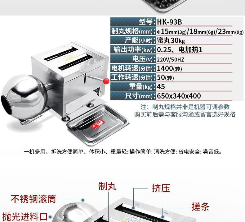 2、本機連續(xù)出條、搓丸、烘干一次完成,且丸型光圓大小均勻,不易破碎,無需進行篩選;